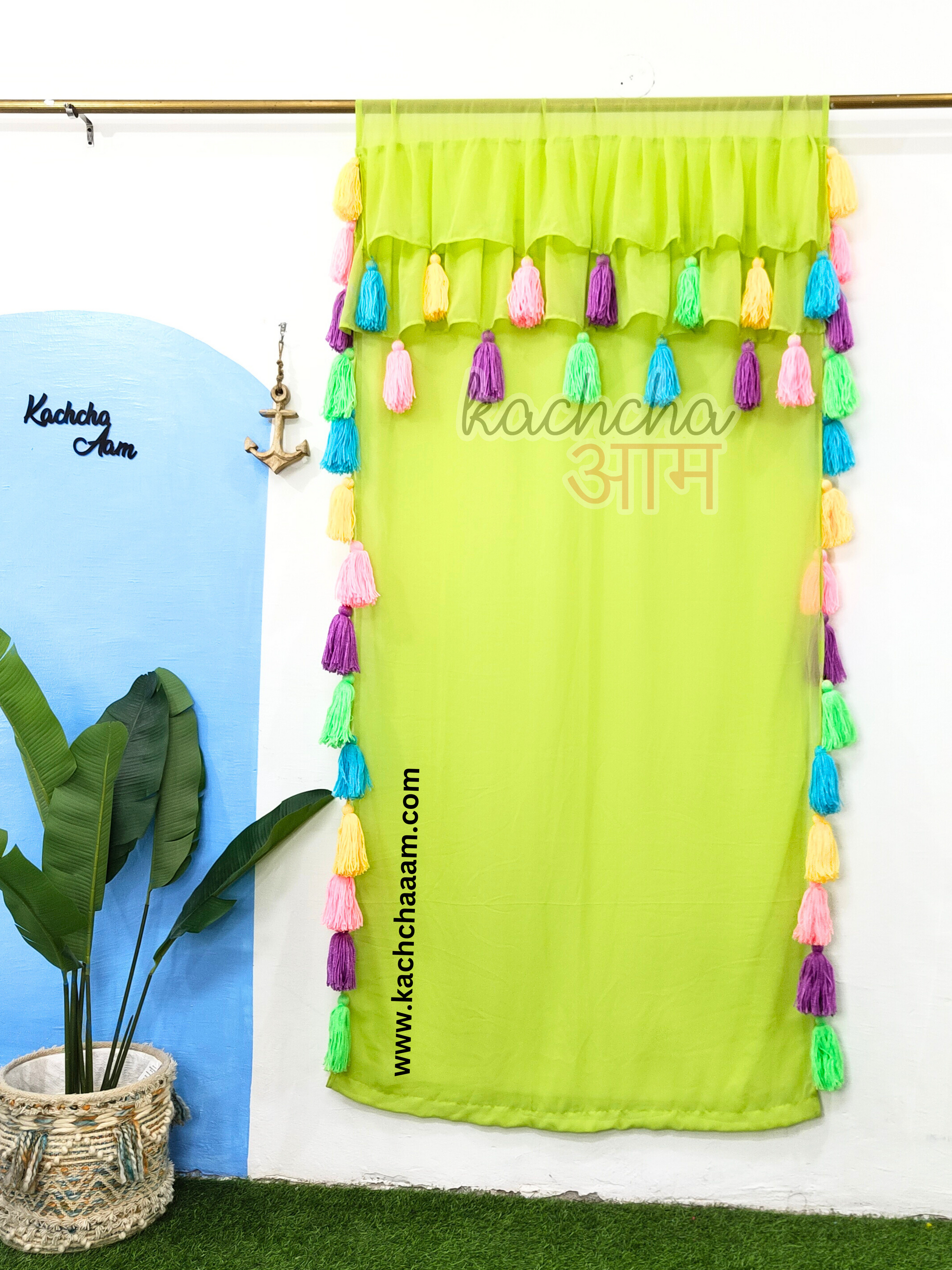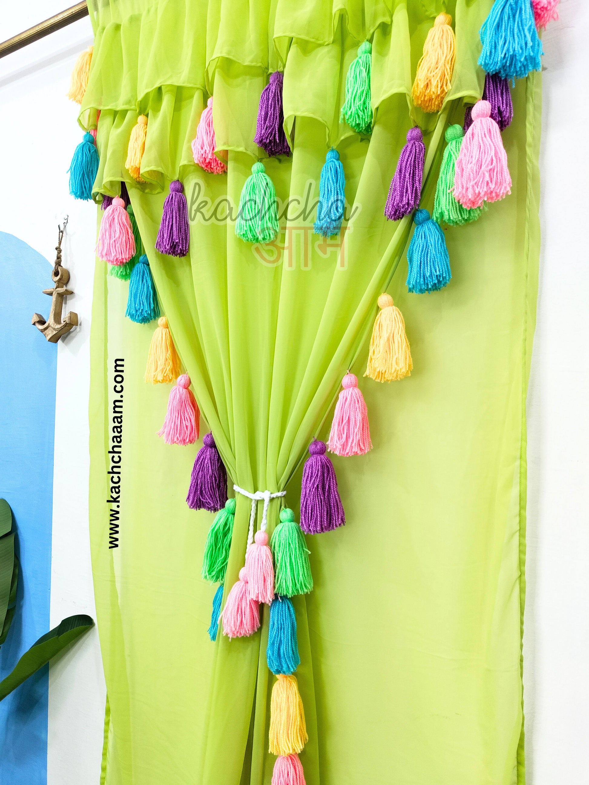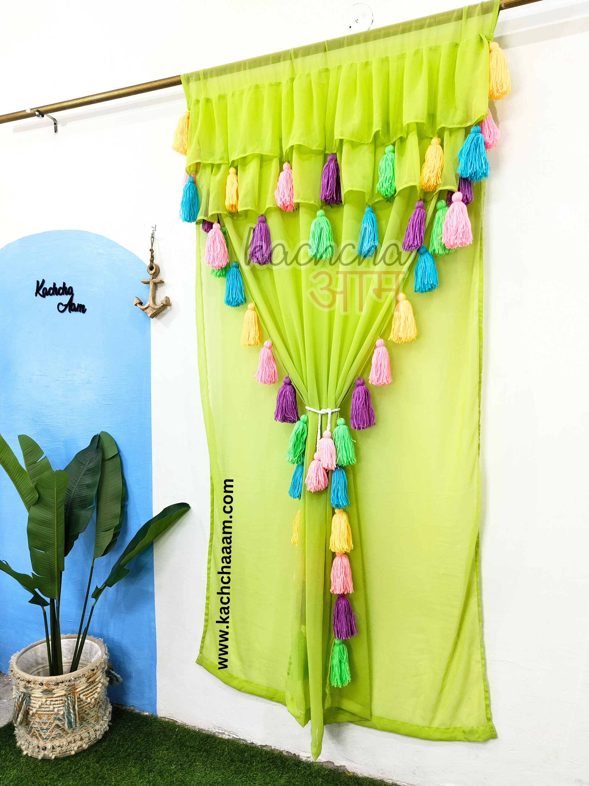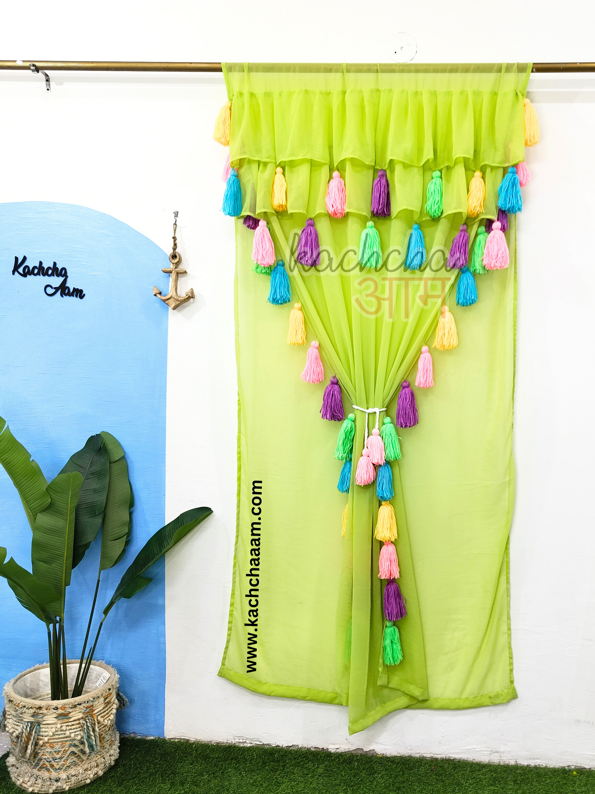 Celestial Tassel Double Layered Pista Green Curtain with Two Frills on Top