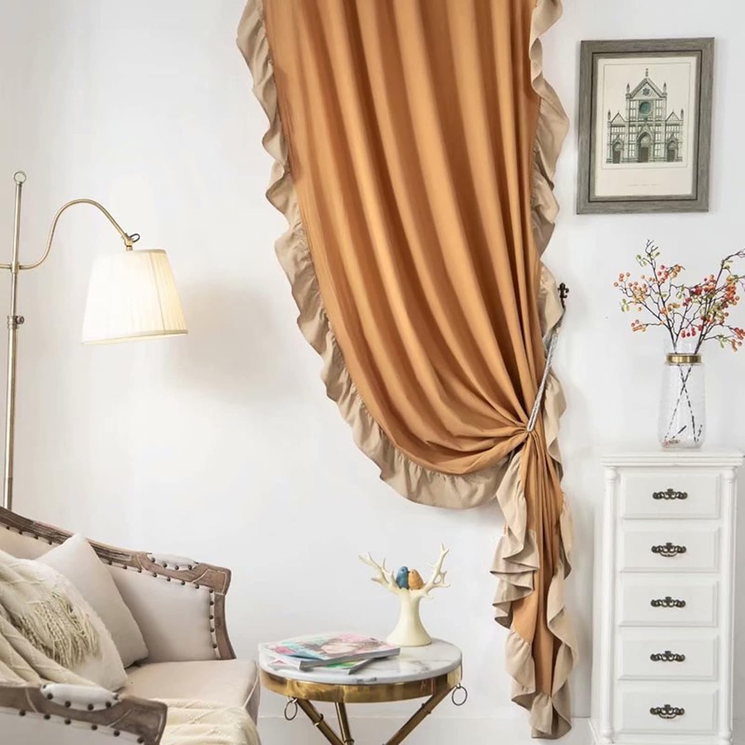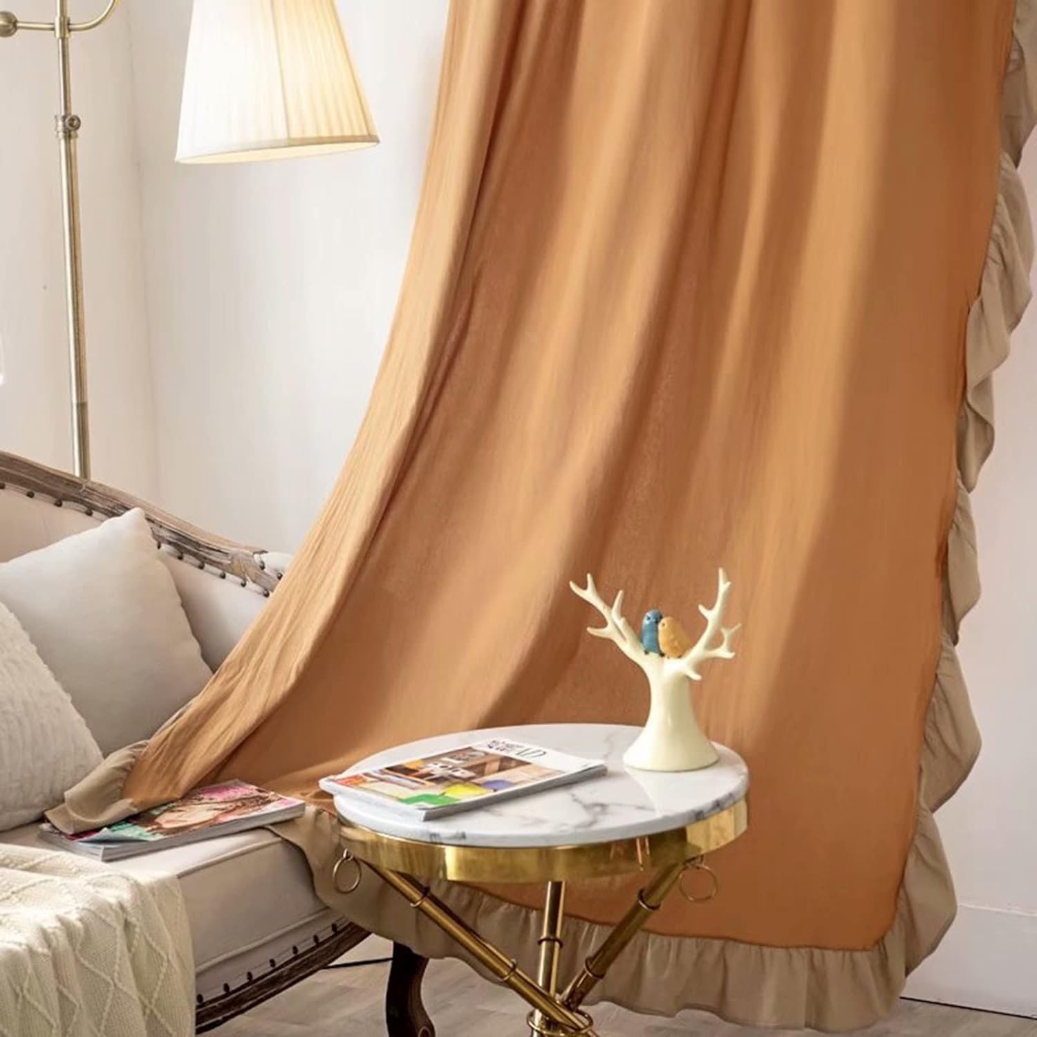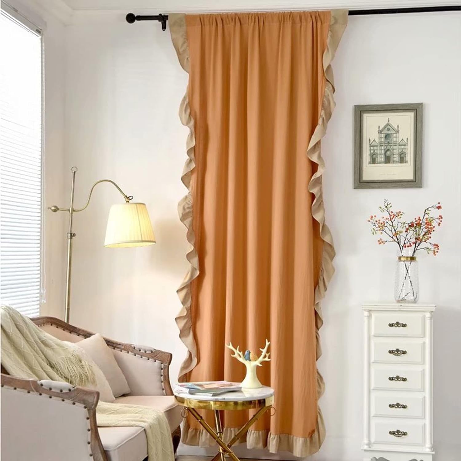 Dual Tone Apricot Beige Side Frill Curtains 100% Cotton Material