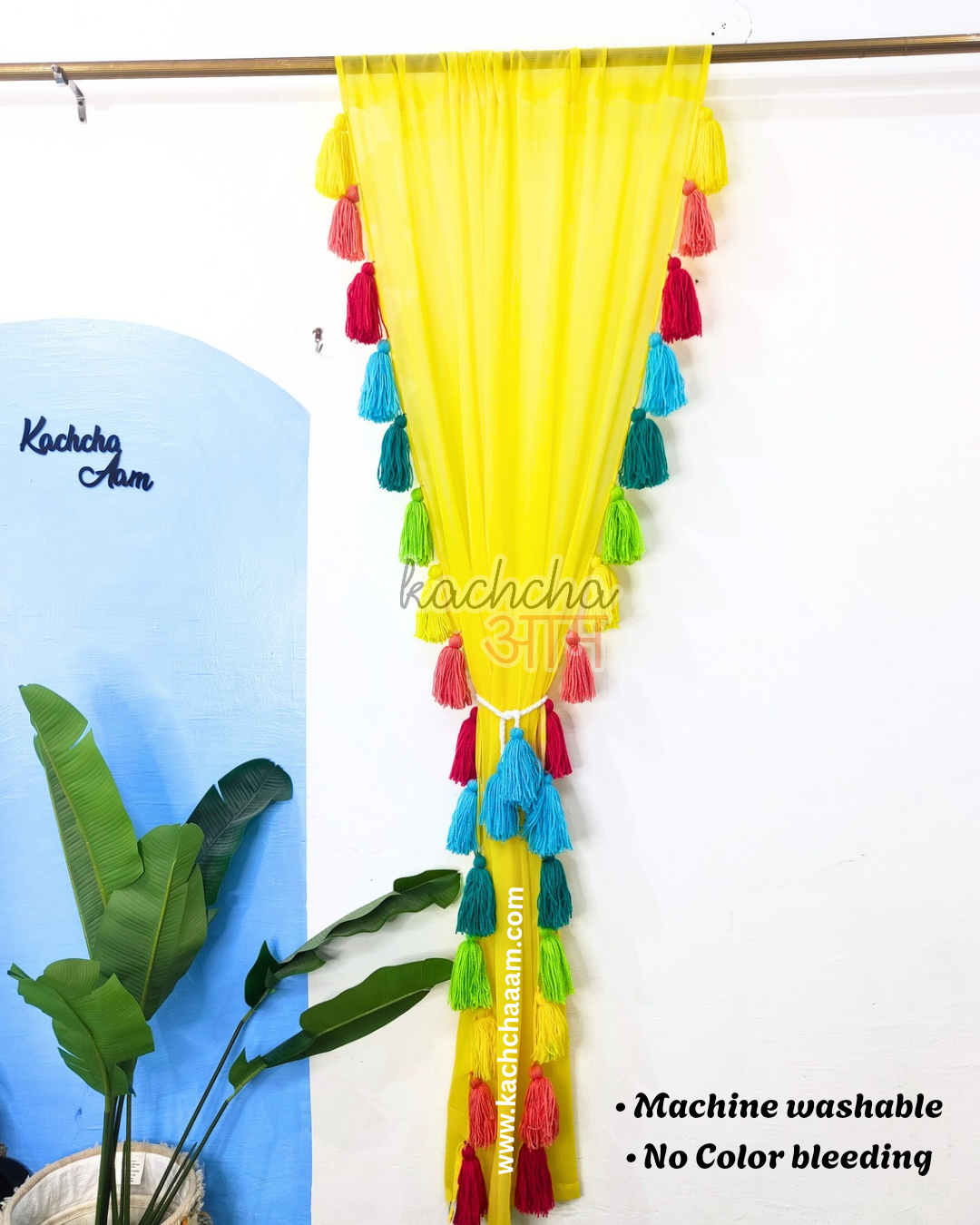 Gulbahar Tassel Lemon Yellow Curtains (Cotton & Sheer)